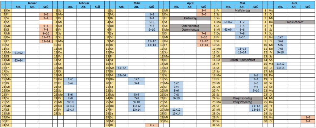 Die folgenden klassenspezifische Unterrichte finden separat statt:
